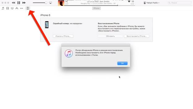 - Se tutto è eseguito correttamente sul monitor del PC a cui è collegato lo smartphone, dovrebbe apparire una finestra di dialogo. In questa finestra è necessario fare clic su "Ripristina" e seguire semplicemente le istruzioni di iTunes.