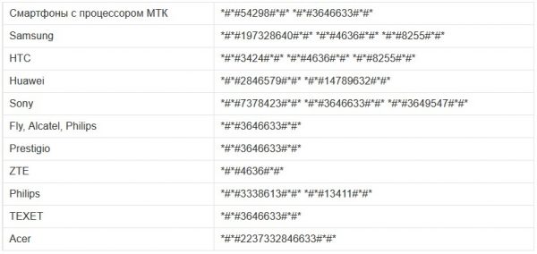 Codici per accedere al menu di ingegneria in diversi smartphone