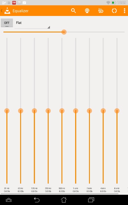 L'interfaccia equalizzatore di VLC - uno dei giocatori Android più popolari