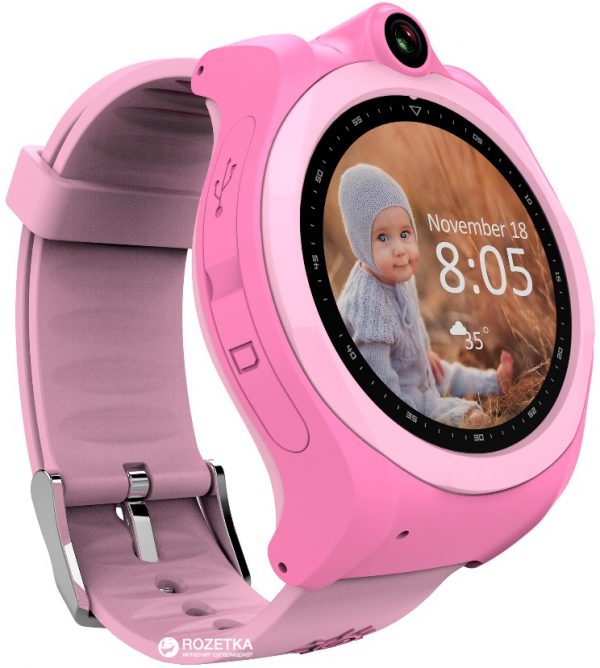 Questo modello di orologi per bambini con un localizzatore GPS è dotato delle funzioni tecniche di un telefono con supporto per 3G e Wi-Fi. La dimensione della fotocamera è di 2 megapixel. È possibile inviare un messaggio di testo o vocale all'orologio, effettuare una chiamata o effettuare una videochiamata.