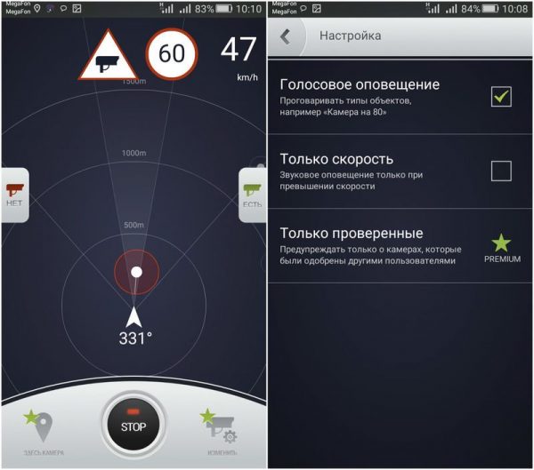 Notificano l'avvicinarsi delle telecamere se vengono caricate nel database. Per fare ciò, utilizzare il GPS nel telefono o in un altro dispositivo. Tutti i dati sulle coordinate della posizione e della posizione delle telecamere vengono presi in considerazione.