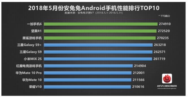 Nel nuovo 2018, Xiaomi Black Shark, creato appositamente per i giochi sul dispositivo, è stato riconosciuto come il miglior smartphone in termini di prestazioni. Il suo punteggio è stato di 287759 punti.