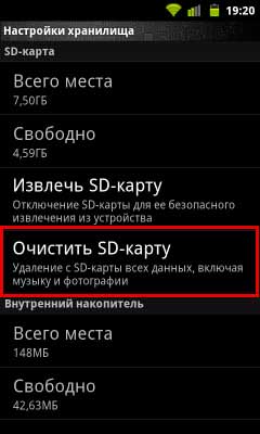 Se lo smartphone determina la presenza di un'unità flash, ma non è possibile aprirla, è possibile formattarla direttamente in questo gadget. Cosa dovrebbe essere fatto: