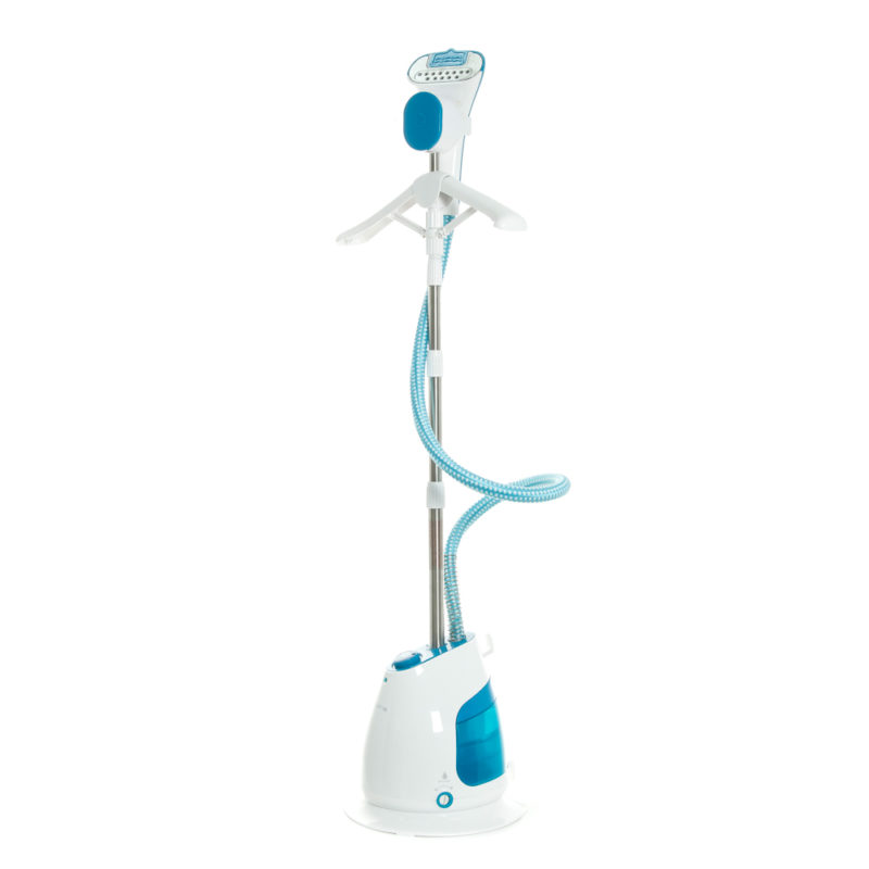 Questo è uno dei migliori piroscafi a mano. Lo scopo principale è la cottura a vapore dei vestiti. Questo apparecchio ha una pompa elettrica che eroga automaticamente un flusso di vapore caldo. Alla presenza di un ugello sotto forma di un pennello, che ha villi. Grazie a questo ugello, puoi pulire gli oggetti sfusi (maglione, cappotto e così via). Il dispositivo ha una potenza pari a 1000 watt.La cottura a vapore, a differenza del dispositivo precedente, può essere eseguita non solo in verticale, ma anche in orizzontale.