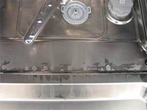 L'acqua del rubinetto contiene molte impurità, compresi i sali minerali. Quando si riscalda l'intera massa d'acqua, le particelle iniziano a depositarsi all'interno del serbatoio pieno. La scala si deposita nei tubi, sulle parti della macchina, a volte sui piatti. I sali minerali che si accumulano gradualmente formano un rivestimento bianco all'interno della lavastoviglie.