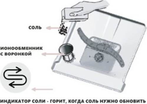 All'inizio, la mancanza di sale non è critica. I primi tre o quattro cicli, lo scambiatore di ioni affronta il compito di ammorbidire durezza dell'acqua in lavastoviglie. Tuttavia, dopo che la fornitura di resina è gradualmente esaurita e con ogni nuovo lancio per ammorbidire l'acqua diventa più difficile. La bilancia si accumula gradualmente all'interno della lavastoviglie e, di conseguenza, porta alla rottura dell'attrezzatura. Per evitarlo, cerca di mantenere il sale con te.