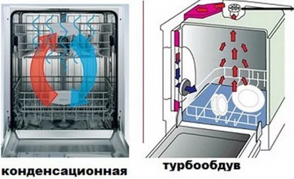 Le lavastoviglie più costose sono modelli con ventola integrata che soffia piatti caldi attraverso l'aria calda. Queste lavastoviglie sono considerate più affidabili ed efficienti nell'uso, ma si rompono anche. In una lavastoviglie con asciugatrice turbo, un ventilatore, un riscaldatore o un sensore termico potrebbero non funzionare. I piatti dopo il lavaggio con questi guasti rimangono bagnati e sporchi.