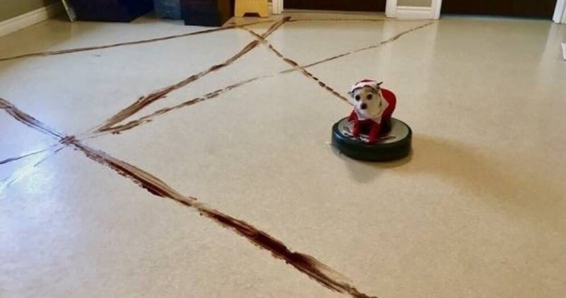 Nella foto - un robot aspirapolvere ha spalmato i rifiuti del cane in giro per la stanza.