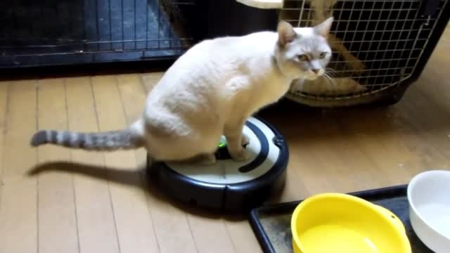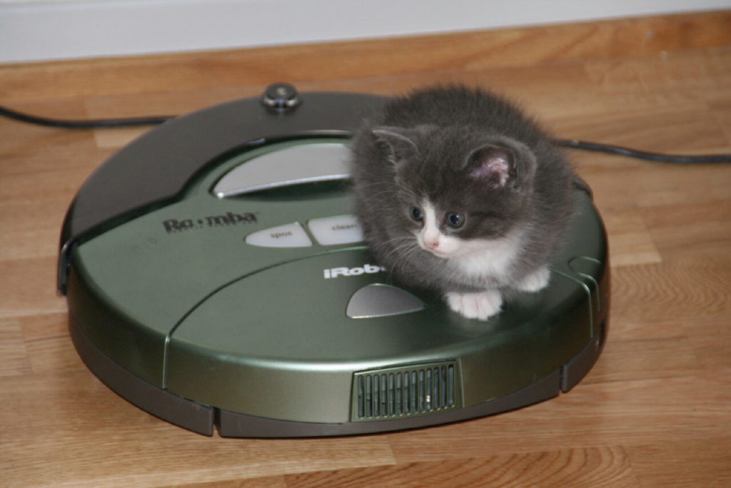 E questo video mostra la prima conoscenza di un gatto e un robot aspirapolvere