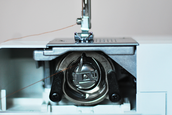 - Infilatura del filo superiore. Segui le istruzioni per la tua macchina da cucire.