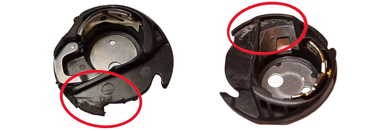 - Il filo superiore si avvolge, anche a causa dell'usura della molla della capsula della bobina, che di solito non è riparabile; una nuova parte viene sostituita.