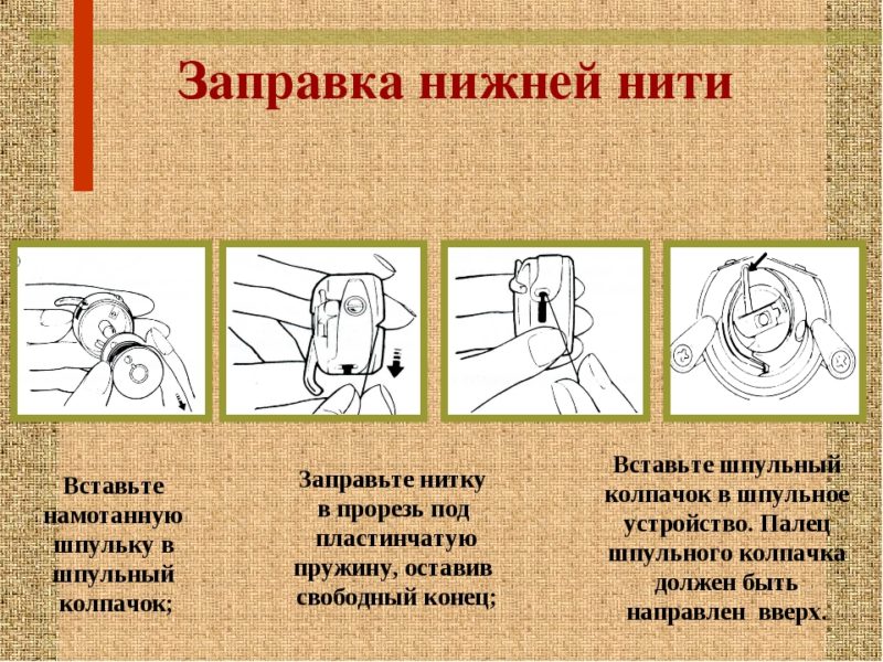 Per prima cosa devi portare la bobina, che è una bobina di metallo o plastica, in condizioni di lavoro. Un filo è avvolto attorno ad esso, che durante la cucitura sarà dalla parte inferiore del tessuto.