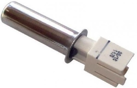 - Termistore Il più delle volte si trova nei moderni modelli di lavatrici. Ha una forma cilindrica e una lunghezza di circa 3 centimetri. Il meccanismo di funzionamento è semplice: la resistenza elettrica diminuisce più volte durante il riscaldamento e il termistore stesso controlla la temperatura dell'acqua.