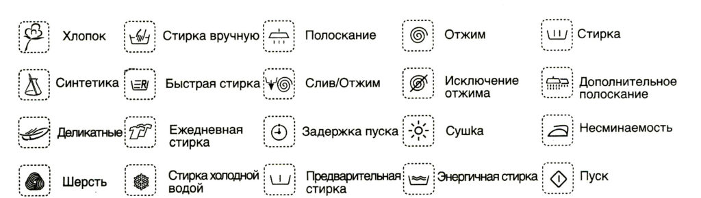 Per rendere il lavaggio il più efficace possibile e non rovinare il bucato, è necessario esaminare attentamente tutte le icone sulla lavatrice. Tra questi ci sono universali e speciali, adatti per un modello particolare.