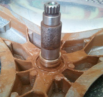 Ispezionare attentamente il manicotto e l'albero, che si trova direttamente sul tamburo stesso. Se si eseguono riparazioni premature, la croce potrebbe essersi rotta o danneggiata. Camminare lungo l'albero con un panno pulito e umido e ispezionare per eventuali danni, verificare l'eventuale allenamento su di esso. Per escluderne la presenza, posizionare i cuscinetti acquistati sull'albero. Questo determinerà se c'è stato almeno un piccolo gioco nella nuova parte. Se c'è ancora gioco, in questo caso è impossibile fare a meno di sostituire il ragno e l'albero.