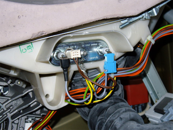 Quindi, rimuovere la parte superiore della macchina con il vassoio polvere situato sotto il pannello di controllo. Sul retro della rondella ci sono bulloni che tengono la valvola di riempimento. Svitarli, perché questa valvola viene rimossa contemporaneamente alla parte superiore. Quindi svitare le viti, rimuovere tutti gli ugelli. Non dimenticare i fili che non ti consentono di rimuovere la parte superiore. Scollegare il tubo di scarico svitando il morsetto. Il prossimo passo è quello di scollegare i fili che portano al riscaldatore.
