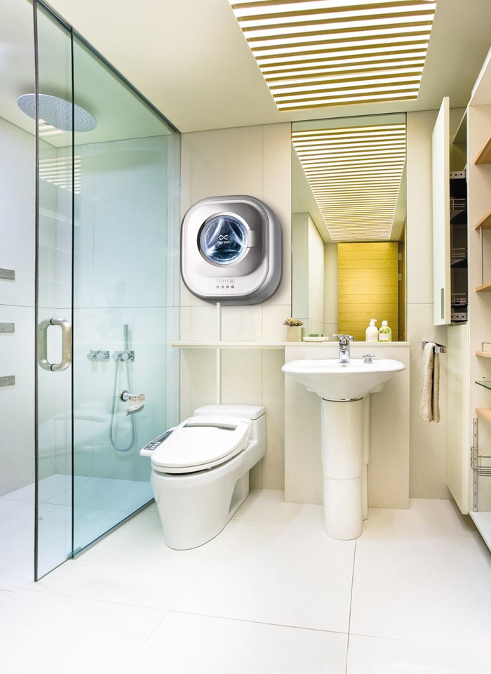 La macchina installata in bagno consente di risparmiare tempo nel processo di lavaggio.
