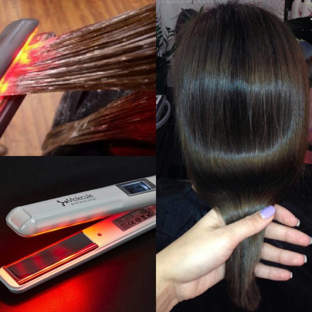 Il restauro dei riccioli utilizzando questo dispositivo è noto come molecolarizzazione dei capelli, poiché la procedura si svolge letteralmente a livello molecolare. Dopo aver guarito con un ferro, i fili si trovano in modo uniforme, brillano e sembrano pieni.