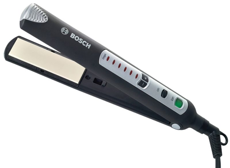 Bosch Gli stilisti di questa azienda sono piuttosto costosi. Ma il prezzo è giustificato. Le piastre per capelli sono attente anche per i capelli sottili, si riscaldano abbastanza rapidamente e c'è anche una vasta gamma di controllo della temperatura. Una caratteristica distintiva è la presenza di una funzione di blocco e blocco dei pulsanti. A peso, il ferro è leggero e molto compatto. Nella confezione sono inclusi anche i coperchi termici, grazie ai quali è possibile rimuovere lo strumento e non attendere che si raffreddi.