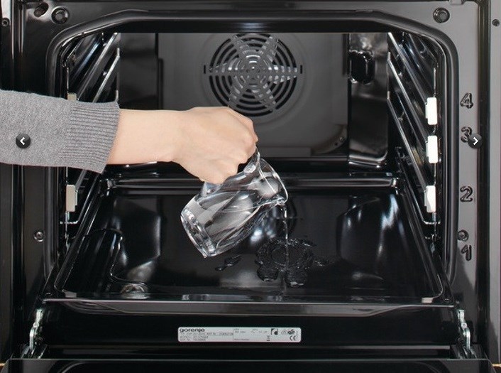 - Successivamente, è necessario attivare la funzione di pulizia o impostare il riscaldamento nel forno a una temperatura di 90 gradi. Dopo essersi riscaldato a questa temperatura, l'acqua passa da uno stato liquido a uno stato di vapore. Il vapore caldo ammorbidisce lo sporco che si è accumulato sulle pareti e sul fondo.