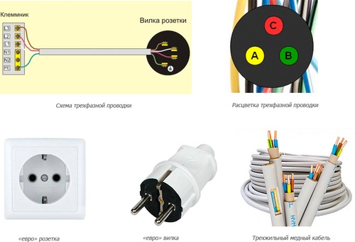 Illustrazione schematica del collegamento di cavi autonomi per una piastra potente e un elenco dei materiali necessari per il lavoro