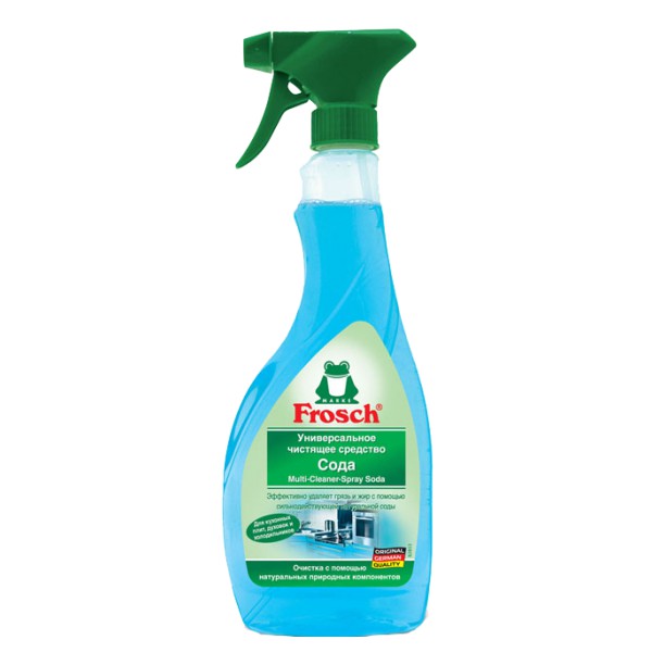 - Frosh è un detergente ecologico con soda come componente principale. Il prodotto è un liquido blu versato in un contenitore con uno spray. Quando applicato e distribuito sulla superficie, schiumerebbe leggermente, mentre al tatto si avvertono piccole particelle di soda. Il suo utilizzo consiste nell'applicare sulla superficie e poi strofinarlo dopo breve tempo;