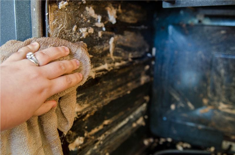 Successivamente, pulire le pareti e il vetro del forno con un panno umido.