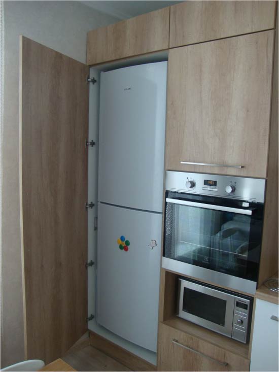 Se si prevede di integrare gli elettrodomestici nella cucina, la larghezza e l'altezza del frigorifero acquistato dovrebbero essere un multiplo dei moduli di arredamento standard - 30, 40, 50 o 60 cm e la profondità - non più di 60 cm.
