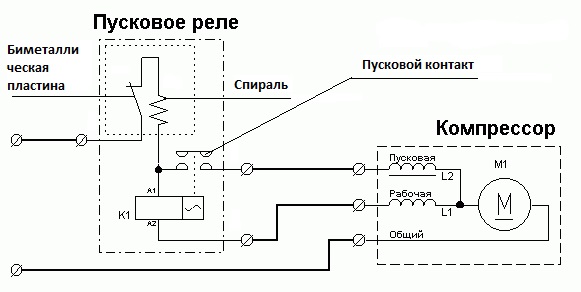 Questo dispositivo è necessario per avviare un motore del compressore asincrono monofase. Lo statore del motore include due avvolgimenti: avviamento e funzionamento. Il primo serve solo per creare una coppia di spunto e avviare il compressore. Il secondo avvolgimento è necessario per mantenere il rotore in condizioni di funzionamento fornendo continuamente corrente alternata ad esso.
