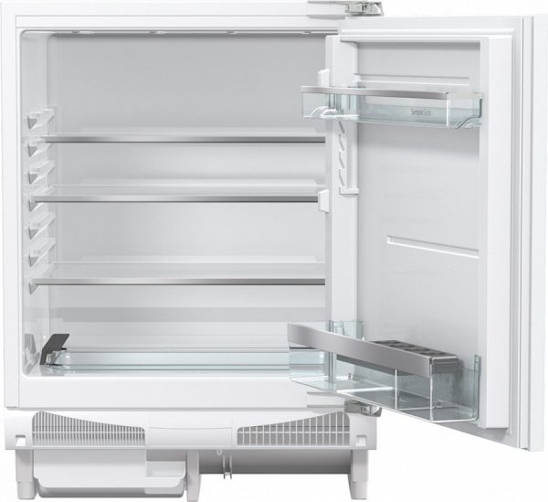 Un frigorifero da incasso a una camera senza congelatore si adatta perfettamente al piano di lavoro.Nonostante le sue dimensioni compatte, è dotato di numerosi ripiani in vetro temperato resistente, un contenitore speciale per verdure con la capacità di regolare l'umidità. Sulle nicchie delle porte sono ripiani profondi. Secondo le recensioni dei consumatori, è conveniente conservare succhi e latte in confezioni e bottiglie.