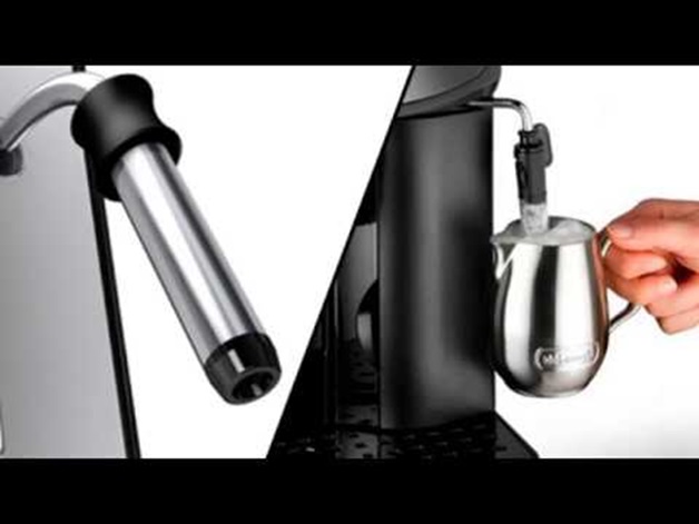 - Frusta a vapore. In diverse macchine da caffè è possibile sostituire il panarello con un frullatore a vapore. Al momento del lavoro, il latte scorre attraverso il tubo, si verifica la formazione di schiuma, dopo di che la schiuma viene inviata alla tazza con la bevanda.