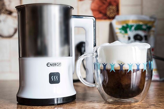 - alla fine del tubo vi è un'ampia apertura, che funziona secondo il principio dell'atomizzatore, amplificando il flusso di vapore. Il tubo viene abbassato in un bicchiere con latte, mezzo pieno. Dopo l'inizio dell'alimentazione dell'aria, il contenitore deve essere ruotato, consentendo all'aria di frustare uniformemente la schiuma;