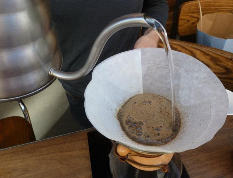 Utilizzando un filtro di carta per una caffettiera