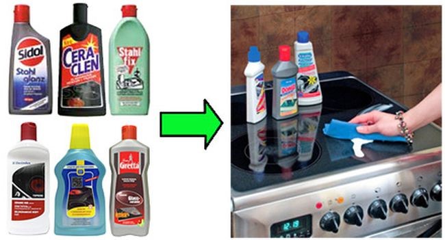 - Detergente per vetroceramica. Ti permette di rimuovere facilmente tracce di acqua, grasso, calcare. La lastra può essere lavorata dopo che la superficie si è raffreddata. Dopo la stufa si consiglia di lavare.