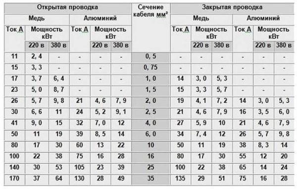 - per piastre che funzionano con una potenza fino a 13,5 kW, vale la pena scegliere un filo con una sezione trasversale di 4 metri quadrati. mm;