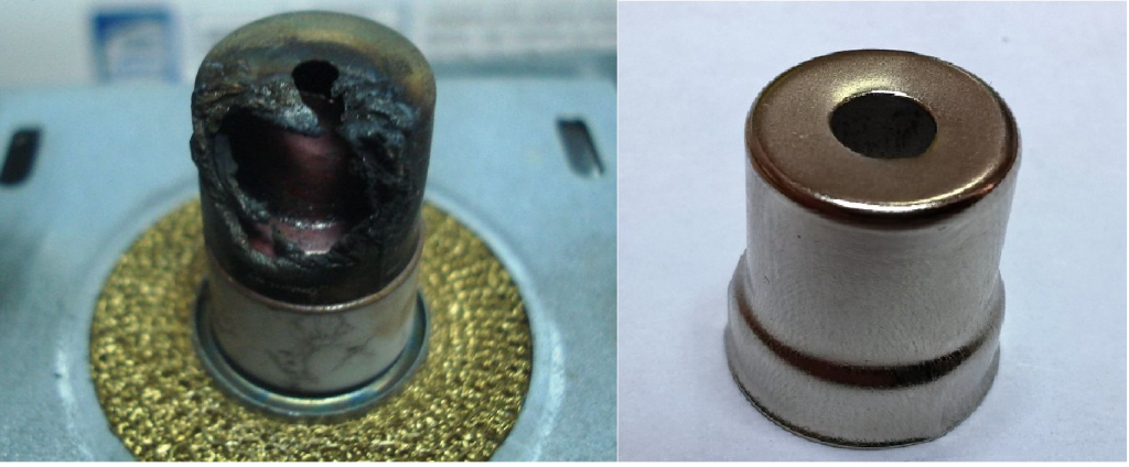 - Ispezionare attentamente il cappuccio. Se è bruciato, come nella foto, è necessario sostituirlo con uno nuovo. In caso contrario, procedere al passaggio successivo;