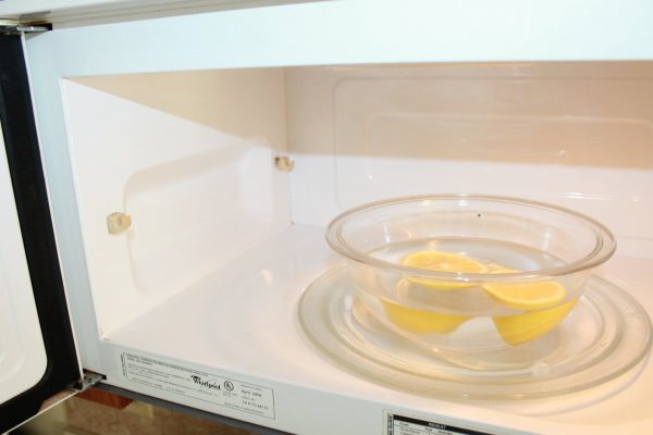- Il contenitore viene inserito nel forno alla massima potenza. È necessario che l'acqua con il limone bolle, dopo di che dovrebbe rimanere all'interno per circa 7 minuti.
