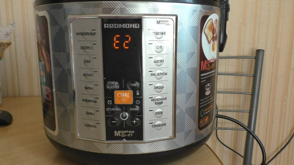 Di solito, se il multicucina si guasta improvvisamente o si rifiuta di accendersi, sul display appare un codice che segnala la causa dell'errore. In genere, una cifra inizia con la lettera E e un numero compreso tra 0 e 5 dopo di essa. Il codice indica una possibile causa del malfunzionamento, quindi ulteriori azioni di riparazione dipendono da questo indice.