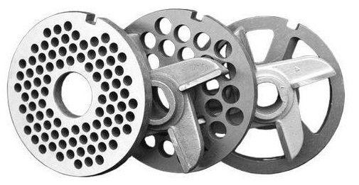 - Grata con buchi. Alcuni modelli possono avere diversi elementi a forma di disco, con fori di diametro diverso per regolare il grado di macinazione della carne macinata.