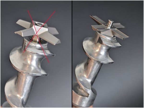 Sembrerebbe che tagliare la carne sia un compito molto semplice. Ma a volte questa procedura porta qualche problema. Un prodotto scarsamente selezionato, tagliato in modo errato prima della macinazione, può ostruire lo spazio tra la griglia e il coltello, avvolgere la vite. Ciò complica notevolmente il processo di elaborazione e talvolta lo interrompe completamente.