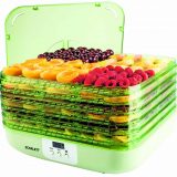 La potenza di questo dispositivo è superiore a quella dei modelli economici: 350 watt. Ha un display digitale per la regolazione di temperatura e tempo. C'è un timer e un segnale acustico per la fine del lavoro. Perché la custodia è realizzata in plastica trasparente, è possibile seguire il processo di asciugatura. Il pacchetto comprende 5 vassoi con un diametro di 32 cm, l'altezza del lato 2,5 cm.