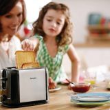 Ordinario tostapane, che non ha funzioni aggiuntive, può essere attribuito alla categoria di elettrodomestici che non crea molti problemi nello spazio della cucina. È semplice: il programma di tostatura può essere impostato con un timer e il funzionamento del dispositivo inizierà dal momento in cui i pezzi di pane vengono abbassati al suo interno.