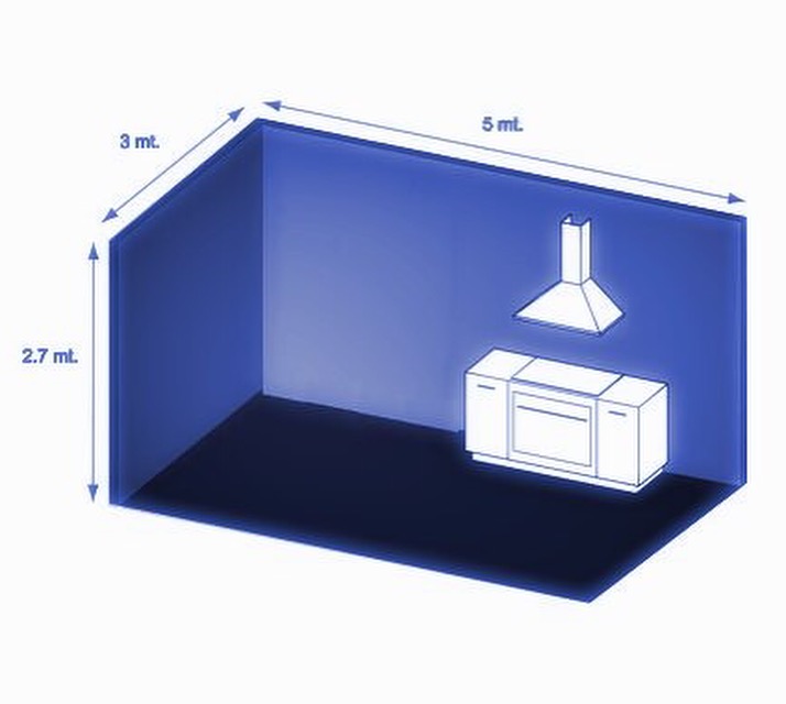 Il calcolo della potenza della cappa per una cucina standard senza tener conto dei fattori complicanti viene eseguito secondo la formula: