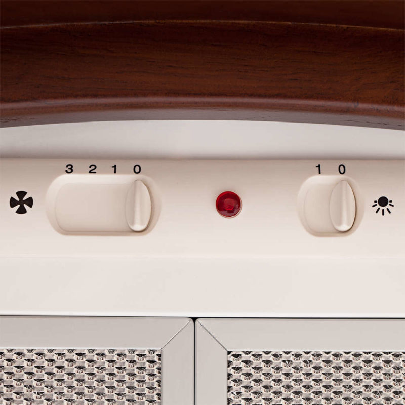 È quasi impossibile incontrare dispositivi che funzionano solo a una potenza (massimo). Tutti i produttori completano le cappe di scarico con un interruttore della modalità di funzionamento (elettronico o meccanico). Ti permette di cambiare velocità della ventola a seconda delle esigenze del proprietario.