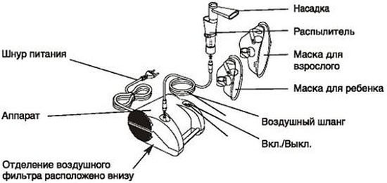 - Il dispositivo funziona in modo tale che il medicinale sia diviso in piccole parti e distribuito in tutto il sistema respiratorio. Questa procedura aiuta a sbarazzarsi rapidamente dei sintomi della malattia.