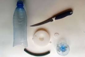 Per un tale inalatore, avrai bisogno di un coltello e delle forbici, una copertura di plastica per le lattine, un tubo di gomma di diametro stretto, lungo circa quindici centimetri e una bottiglia di plastica.