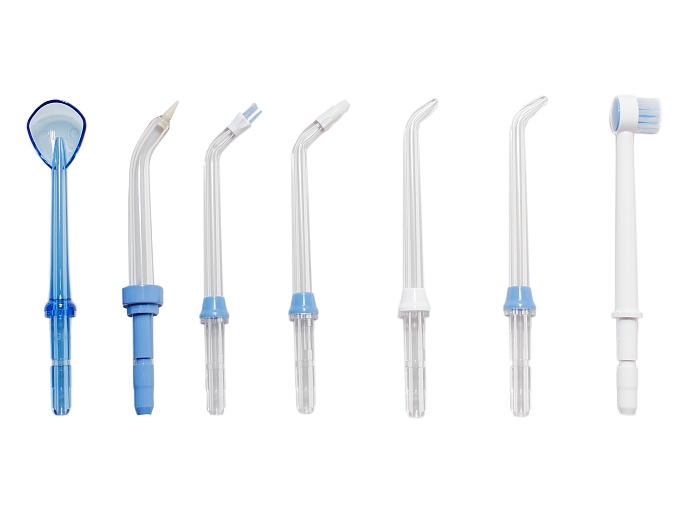Molti dispositivi sono forniti di serie con ugelli progettati per irrigare la bocca e massaggiare le gengive. Per scegliere l'opzione migliore, è necessario capire quale dei suggerimenti i membri della famiglia avranno bisogno.