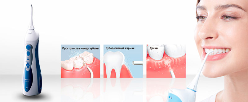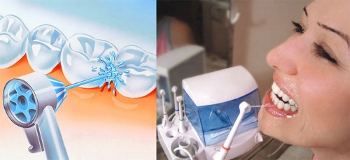 Foto: Varianti dell'effetto positivo del dispositivo di irrigazione su determinate aree della cavità orale e dei denti.