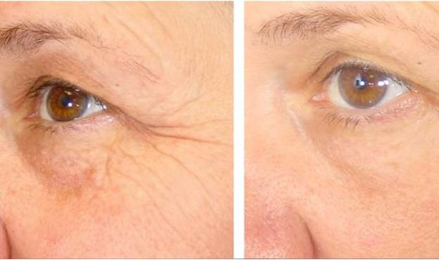 - leviga le rughe, comprese quelle profonde (sulla fronte e sugli zigomi, sotto il naso);