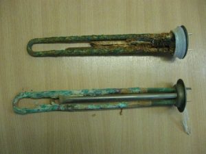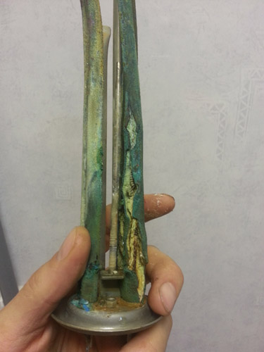 1. La distruzione dell'isolamento dell'elemento riscaldante. La fonte di questo motivo è la distruzione della membrana TENA o della periclasi. Quando questo guscio viene distrutto, viene esposta la spirale di riscaldamento, che è costantemente sotto alta tensione. Quando il guscio viene distrutto, la spirale inizia a interagire attivamente con il miglior conduttore attuale: l'acqua. Di conseguenza, vengono rilasciate scariche elettriche minori che ricordano il formicolio della luce. Puoi riparare da solo il guasto sostituendo un elemento riscaldante usurato.